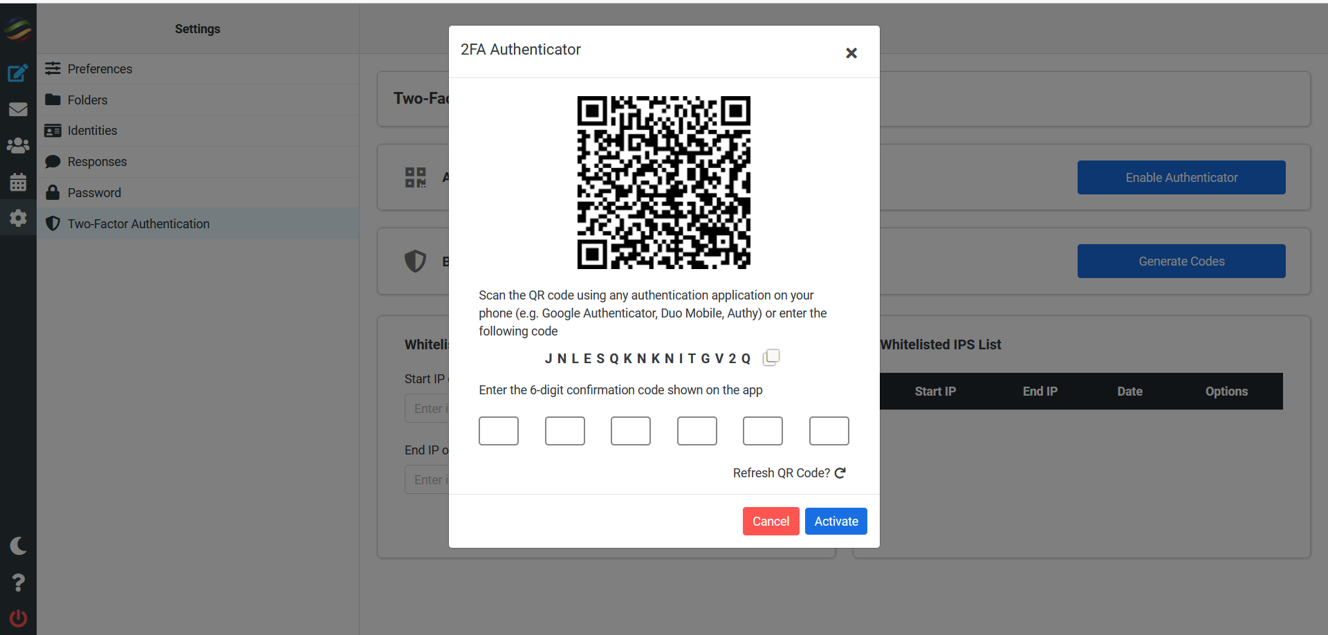 [Feature] We have added 2FA settings for Email Accounts. Users can now setup Two-Factor Authentication(2FA) in Roundcube.