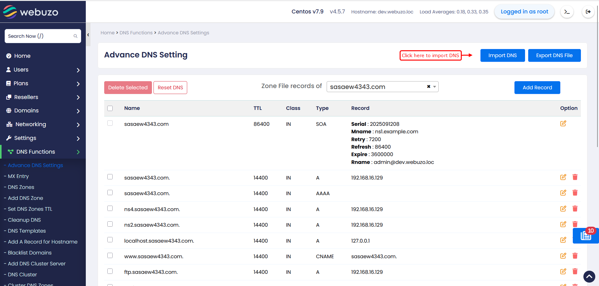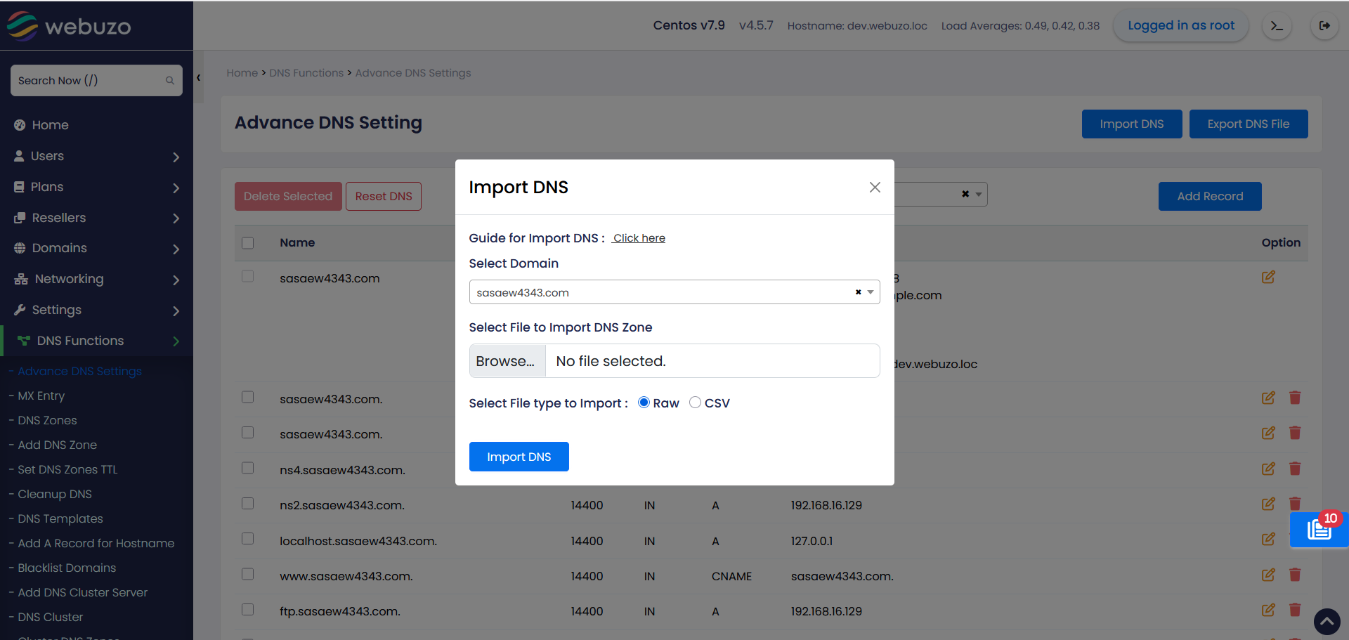 [Feature] Added Import DNS in Admin/Enduser panel.