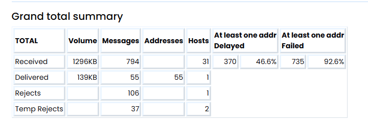This report helps administrators monitor email performance and troubleshoot delivery issues