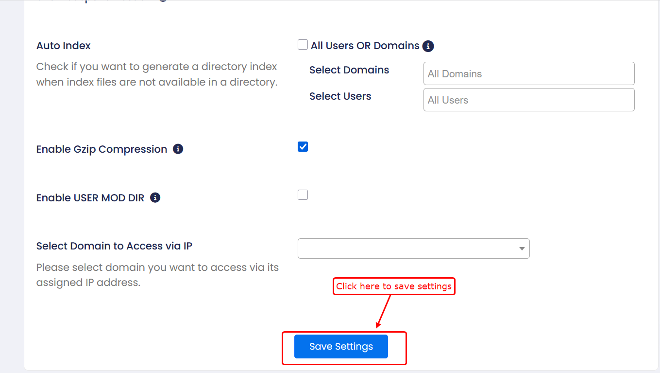 Generates a directory listing when no index file (likeindex.phporindex.html) is present in a directory.- All Users OR Domains :-