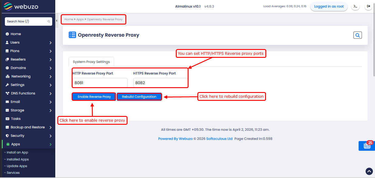 To enable OpenResty reverse proxy, go to Admin panel >OpenResty Reverse Proxy.