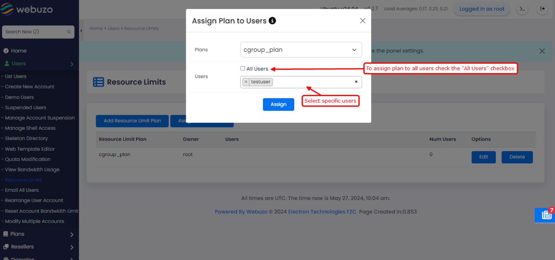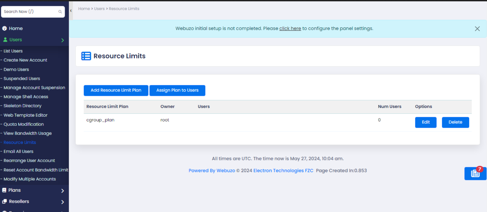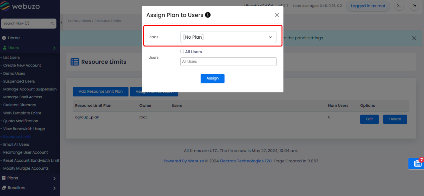 This guide will show you how to add resources plan and assign it to the users.