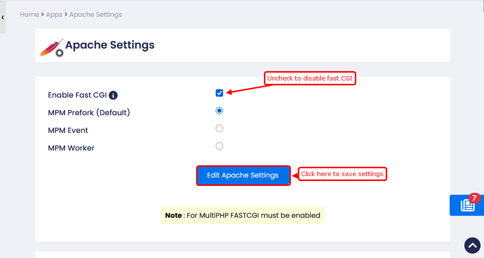 Enable Fast CGI Uncheck (Disable) the Fast CGI option.