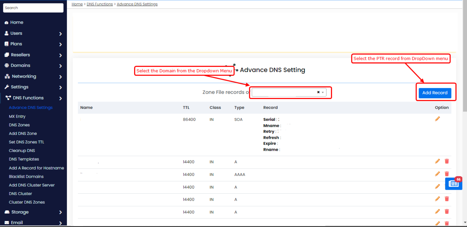 • Go to Advance DNS Settings in the Admin Panel > Home > DNS Function > Advance DNS Settings.