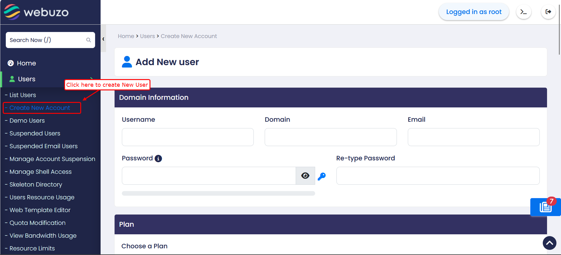 • Go to Home → Users → Create New Account