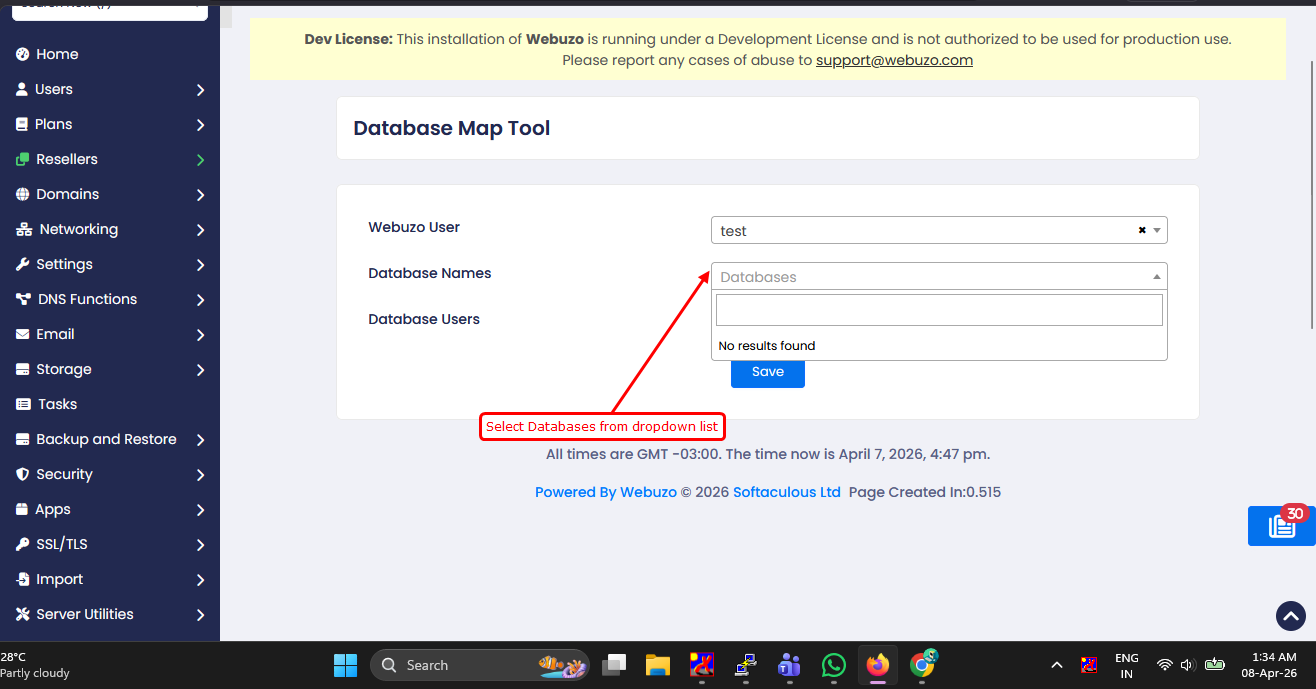 After selecting the Webuzo user, choose one or more databases from this dropdown list to map them to the selected user.