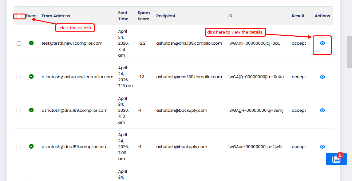 Once you click on the eye icon then you can see the email delivery details