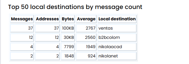 The Email Statistics Summary provides a detailed analytical report of email activity generated by the mail server within a selected time range.