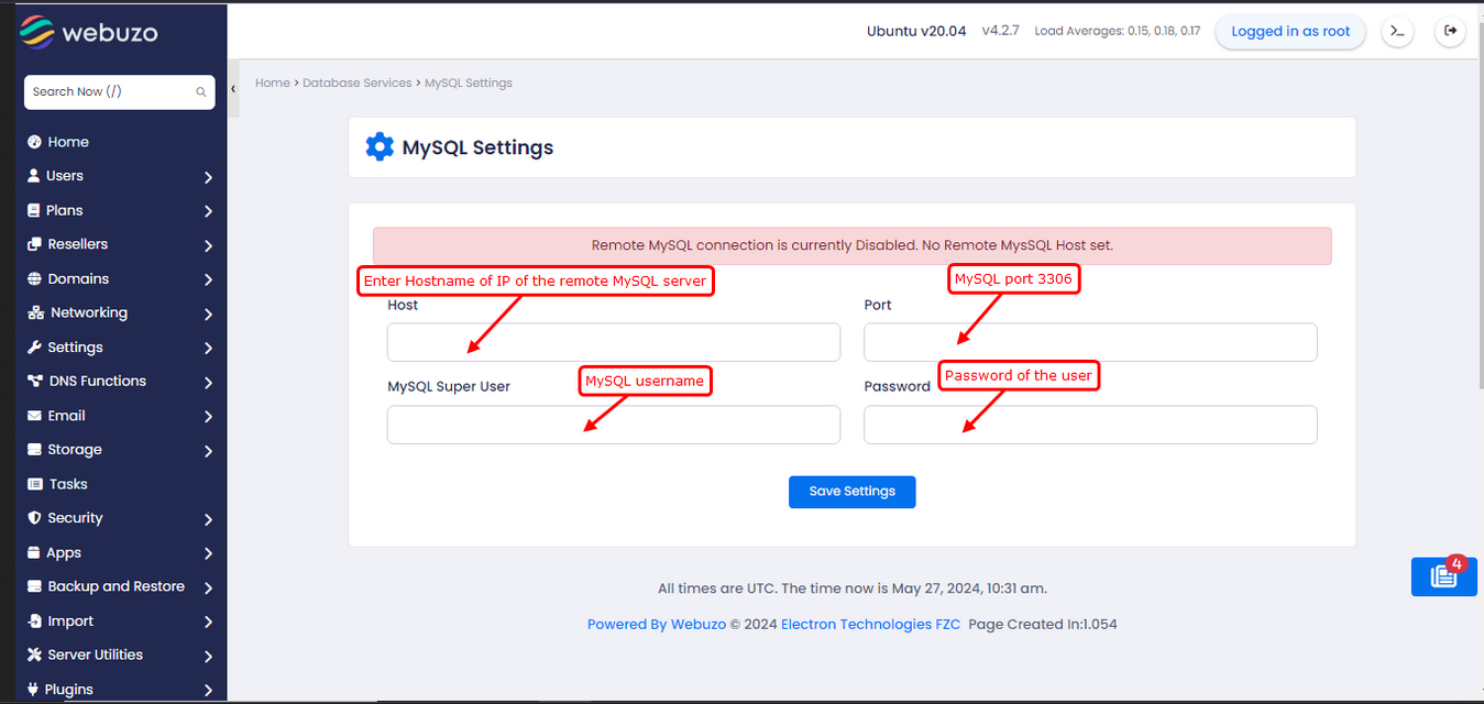 This guide helps you configure MySQL settings using the MySQL Settings Wizard under Database Services. It provides a simple and guided way to set up connection details.