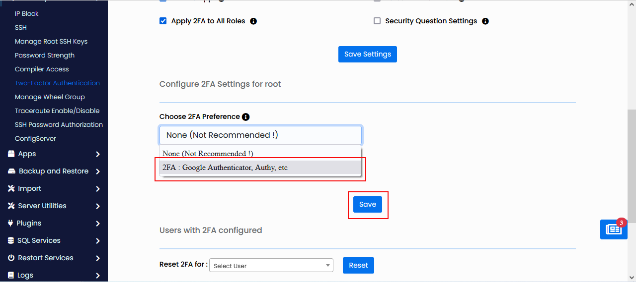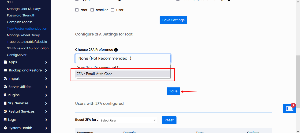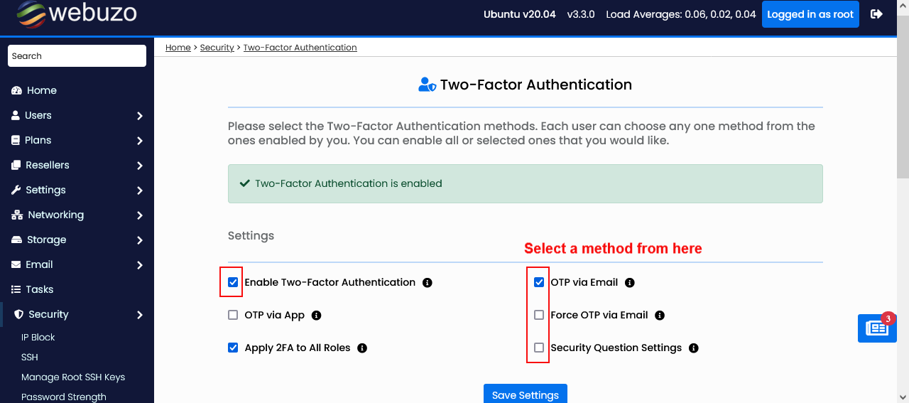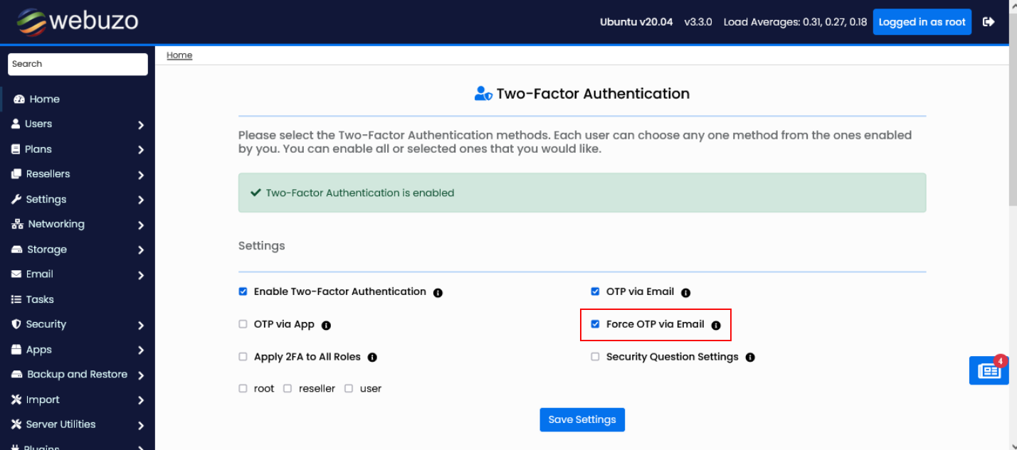 To Enable the Two-Factor Authentication please check the checkbox, and save the settings.