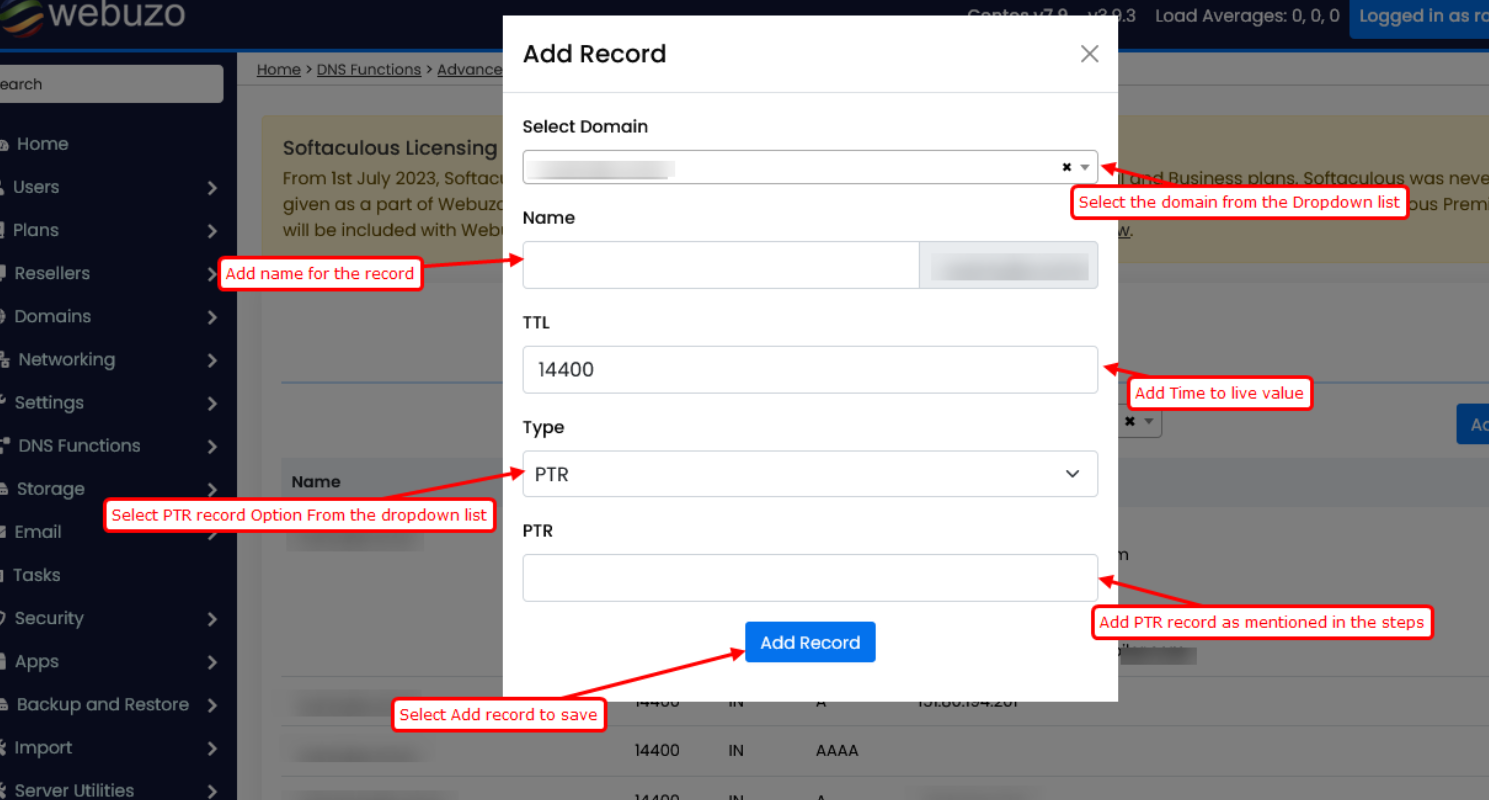 • Go to Advance DNS Settings in the Admin Panel > Home > DNS Function > Advance DNS Settings.